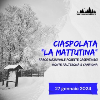27 Gennaio Ciaspolata “La mattutina” – 27/01/24 – Diurna Ciaspolata “La mattutina” – 27/01/24 – Diurna Ciaspolata “La mattutina” – 27/01/24 – Diurna Difficoltà: Medio-Facile (T-E)Durata: 2,5 hLunghezza: 5.5 kmDislivello: +/- 200 mRiccardo Raggi2024-02-01T06:02:38+01:00sabato 27 Gennaio 2024|Categorie: Escursioni, Escursioni passate