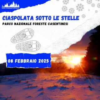 08 Febbraio Ciaspolata sotto le stelle – 08/02/25 – Notturna Ciaspolata sotto le stelle – 08/02/25 – Notturna Ciaspolata sotto le stelle – 08/02/25 – Notturna Difficoltà: Medio-Facile (T-E)Durata: 2,5 hLunghezza: 5.5 kmDislivello: +/- 200 mRiccardo Raggi2025-02-06T17:06:40+01:00sabato 08 Febbraio 2025|Categorie: Escursioni, Escursioni passate