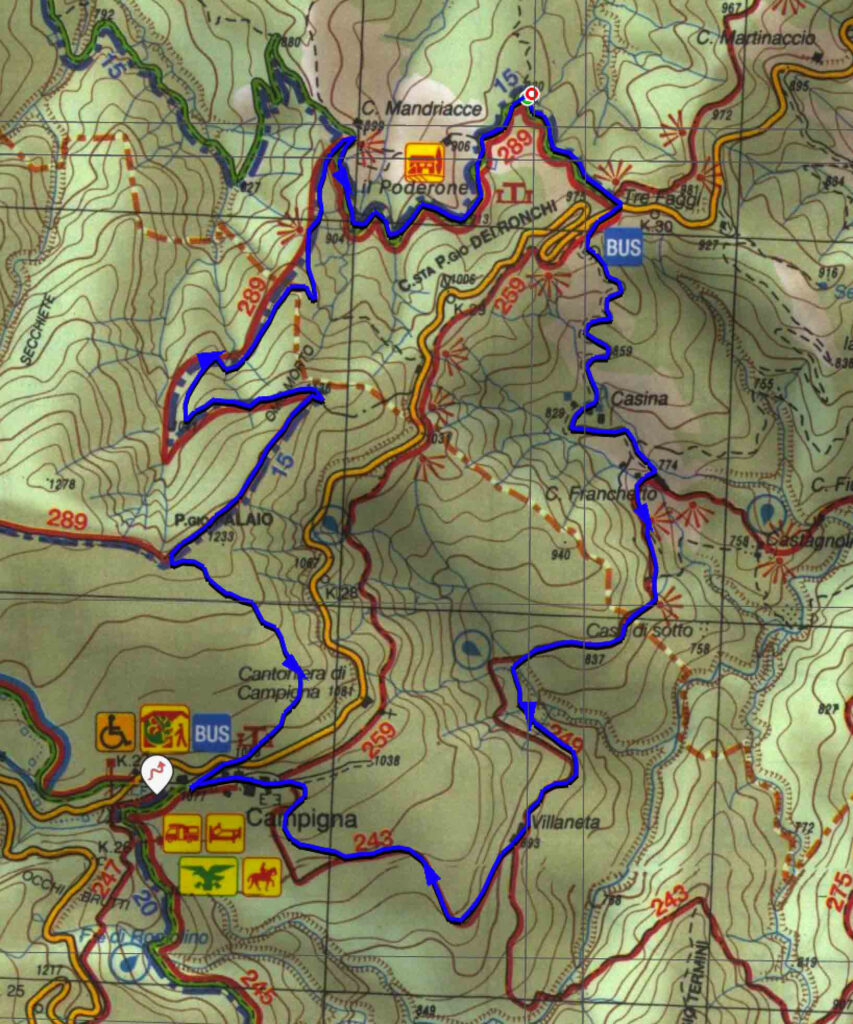 ITINERARIO: Poderone – Poggio Palaio – Campigna – Villaneta – Poderone.