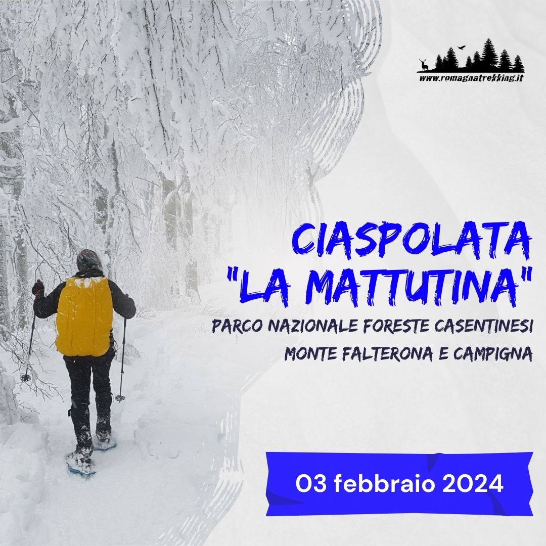 La prima ciaspolata del weekend, quella dove potrete trovare ancora la neve fresca e non pestata dai tanti ciaspolatori che si affollano sui crinale del Parco Nazionale Foreste Casentinesi. Un sabato mattina diverso dal solito immersi nella natura di Romagna!