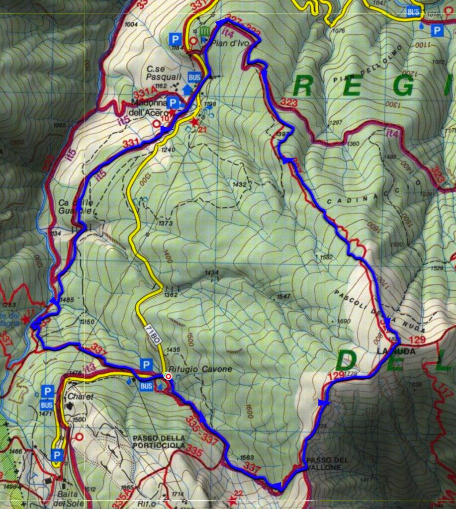 ITINERARIO: Madonna dell’Acero – Monte La Nuda – Passo del vallone – Rif. Cavone – cascate Dardagna – Madonna del’Acero