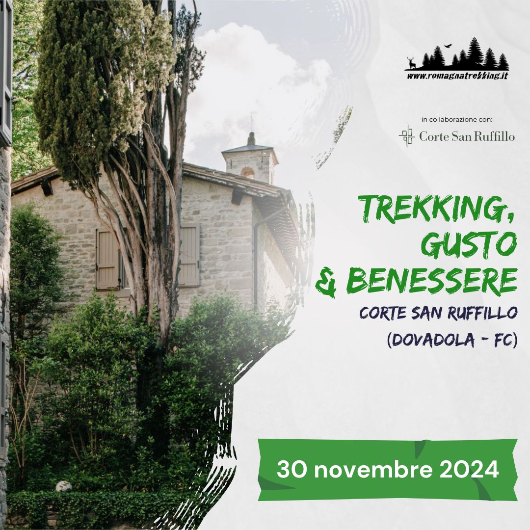 La partenza del trekking sarà da Corte San Ruffillo, un borgo le cui origini risalgono al 1200, posto a a 250 metri sul livello del mare, poco sopra il borgo di Dovadola: da qui partiremo lungo una strada ben battuta che, successivamente diventerà una comoda sterrata. L’itinerario si sviluppa parzialmente sul fianco del monte che sovrasta il borgo fin quasi sulla cresta, toccando i ruderi del palazzo di Monte Agudo.