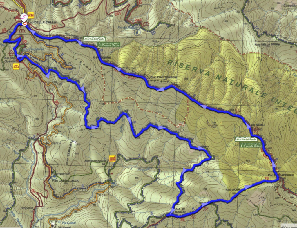 ITINERARIO: Passo della Calla – Aia delel guardie – Aia di Dorino – P.sso Porcareccio – Poggio Scali – Passo della Calla.